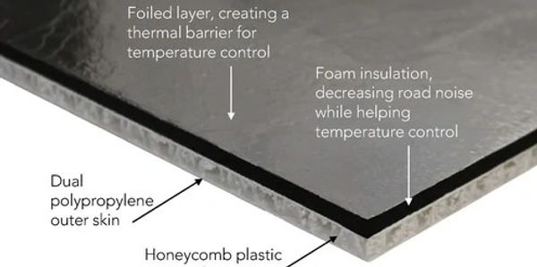 Noise-deadening material and temperature control make for a quiet and comfortable environment. Lightweight, pre-precision-cut for each specific vehicle and pre-drilled means quick and easy installation. Textured surface allows liner to look better, longer.
